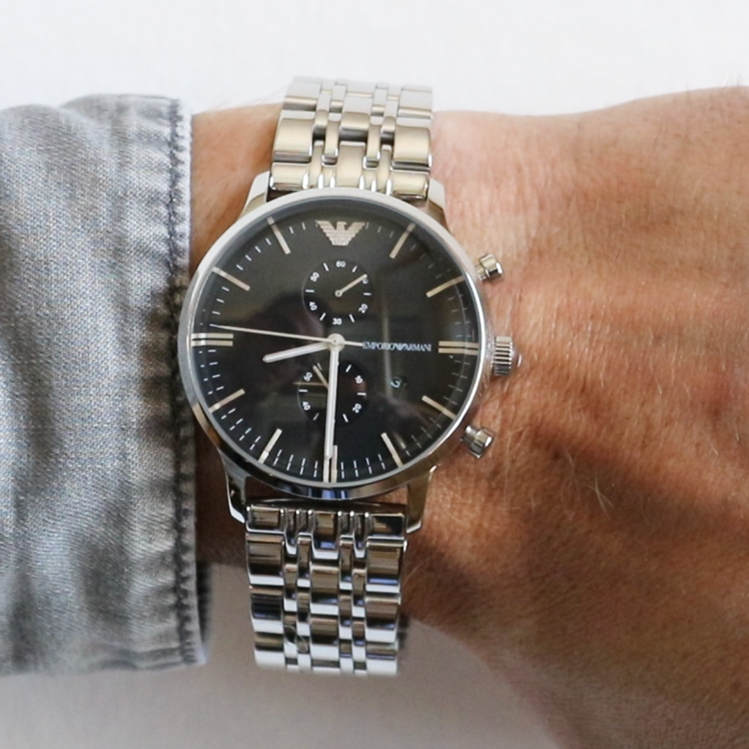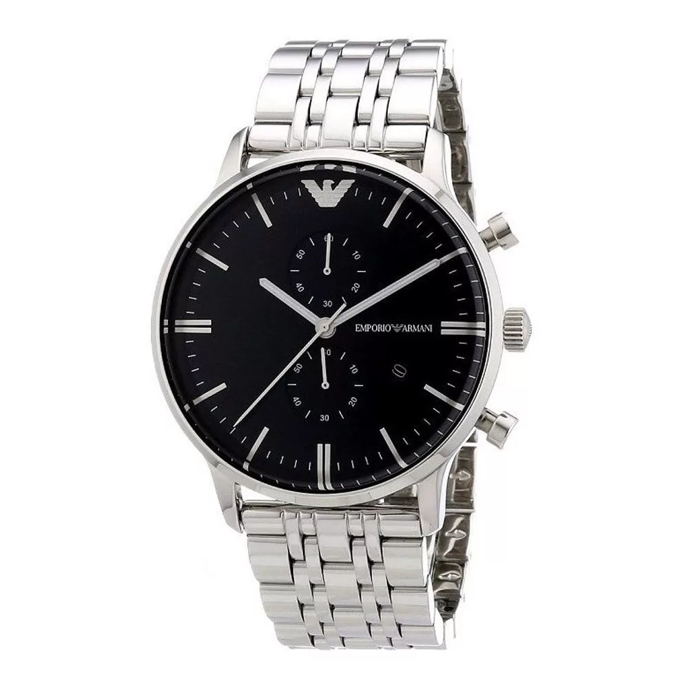 Emporio Armani AR0389 is a classic choice for men who prefer a functional approach to their accessories. The case is made from stainless steel coupled with a black dial and a chronograph. Suitable both for everyday wear and formal occasions.