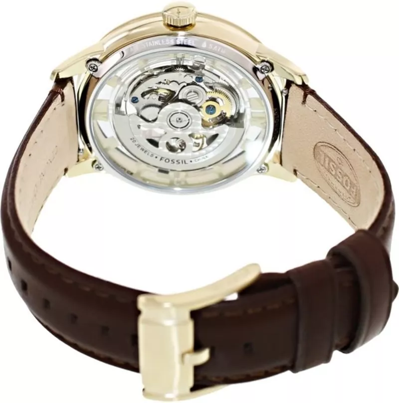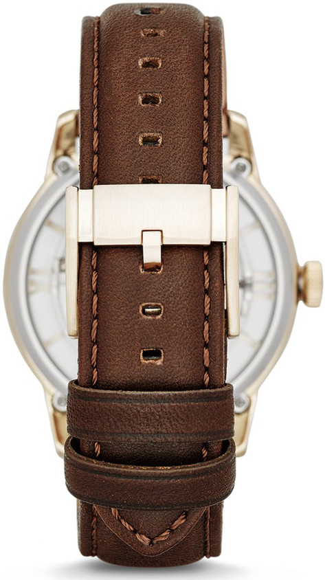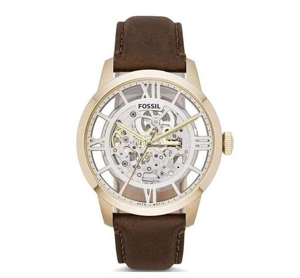 Fossil ME3043 Townsman Automatic Skeleton Gold Dial Brown Leather Strap Watch for Men