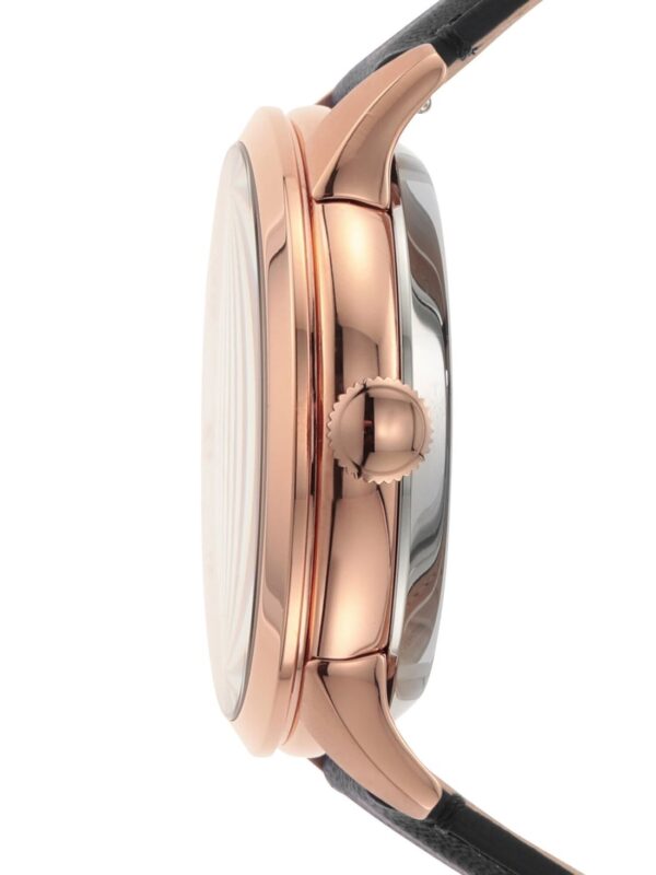 The watch operates without a battery, winding itself through the natural motion of the wearer’s wrist. A 22mm black genuine leather strap complements the bold case, secured with a classic buckle for a secure and comfortable fit. Protected by a mineral crystal, the watch is water-resistant up to 50 meters, making it suitable for daily wear and short periods of swimming. Balancing functionality and design, the ME3170 is a refined statement piece for any modern wardrobe.
