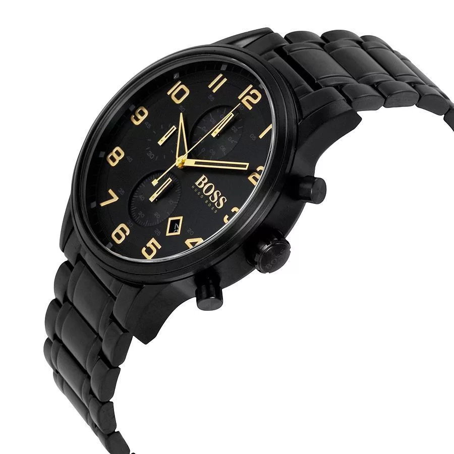 Hugo Boss 1513275 is a chic sports watch made of high-quality and durable materials that will delight you with its functionality. The bracelet and case are made of black stainless steel with a matte finish. Black dial is embellished with gold details and three subdial chronograph creating a stylish and versatile model that you can rely on. Powered by Quartz. Water-resistant and protected by mineral glass to ensure you a long quality service.