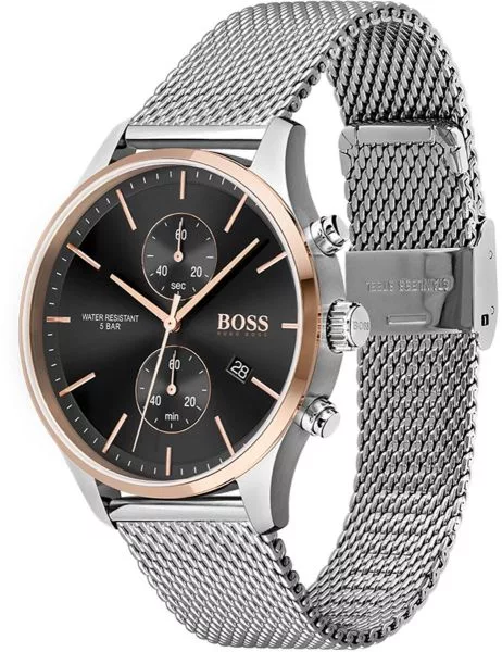 HUGO BOSS HB1513805 ASSOCIATE Chronograph is a beautiful watch from Hugo Boss with a quartz timepiece. The time is displayed analog. In addition, this watch features a mineral watch-glass. The watch is with a strap of stainless steel in the color silver.